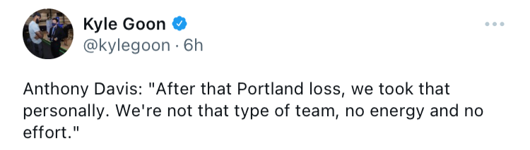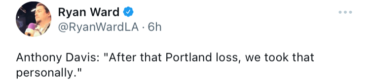 포틀랜드전 패배 이후, 우린 그걸 심각하게(감정적으로, 모욕적으로.. 예삿일이 아닌 것으로) 받아들였어. 우린 그런 팀이 아니야. 에너지 없고 전력을 다 하지 않고 약간 이기적으로 플레이했지. 우린 그걸 바꾸려고 노력했어.